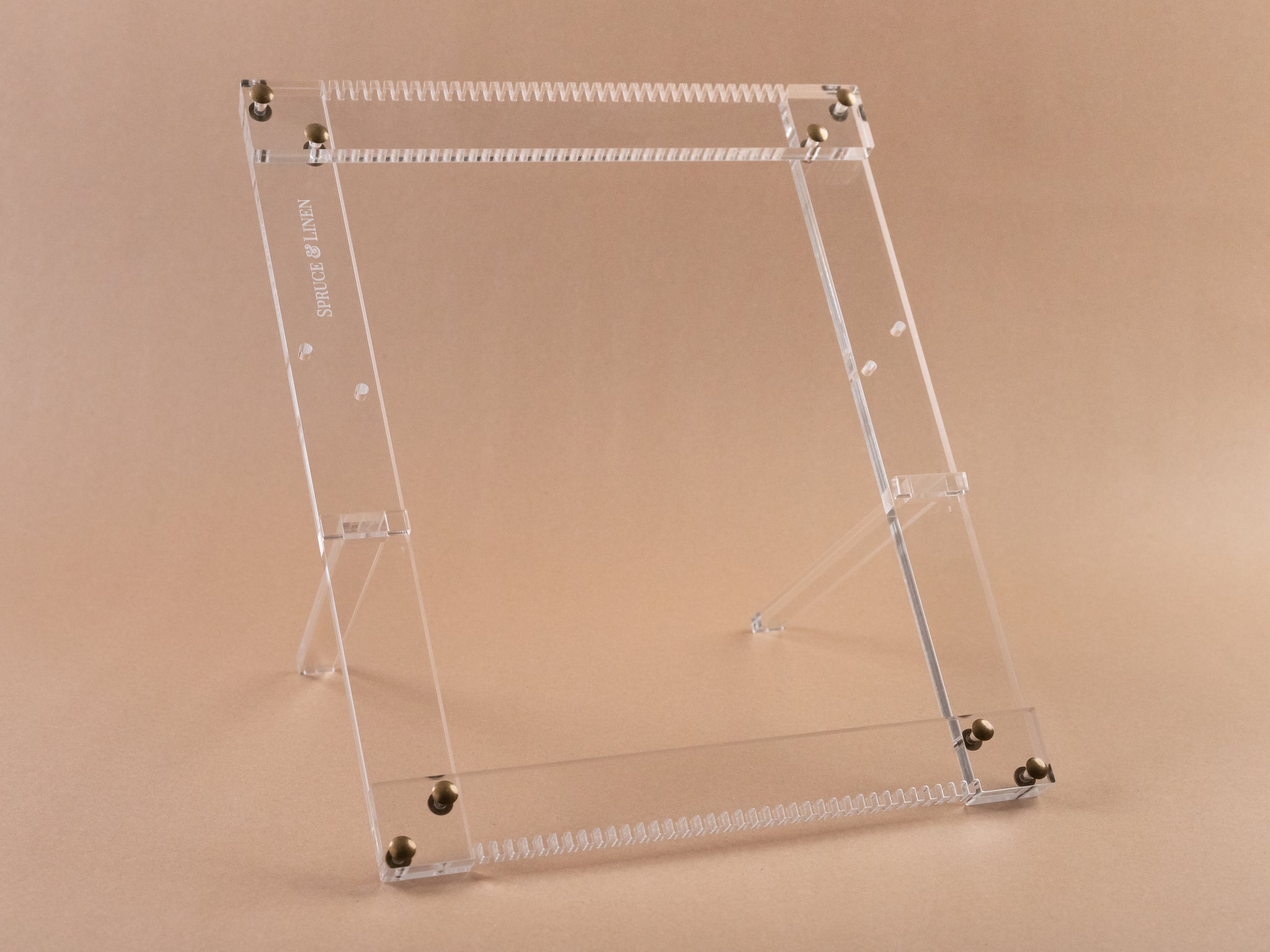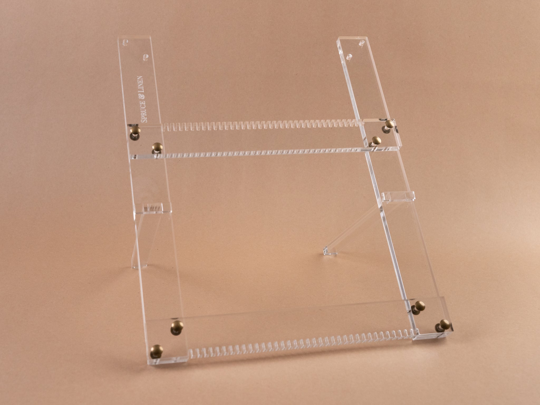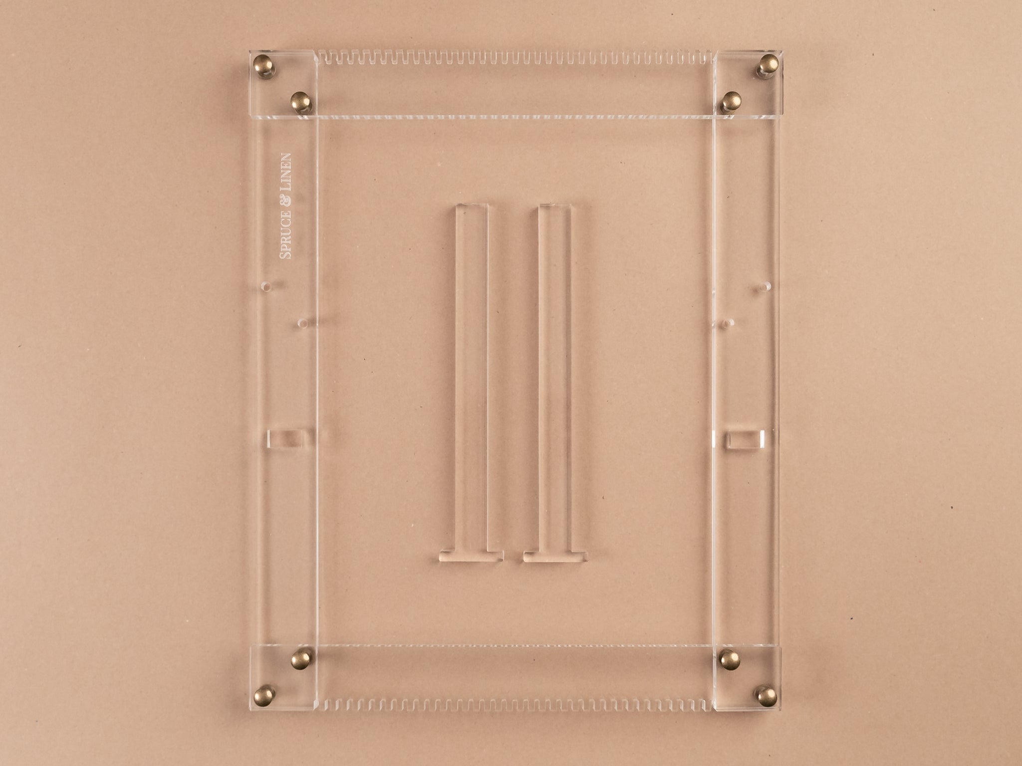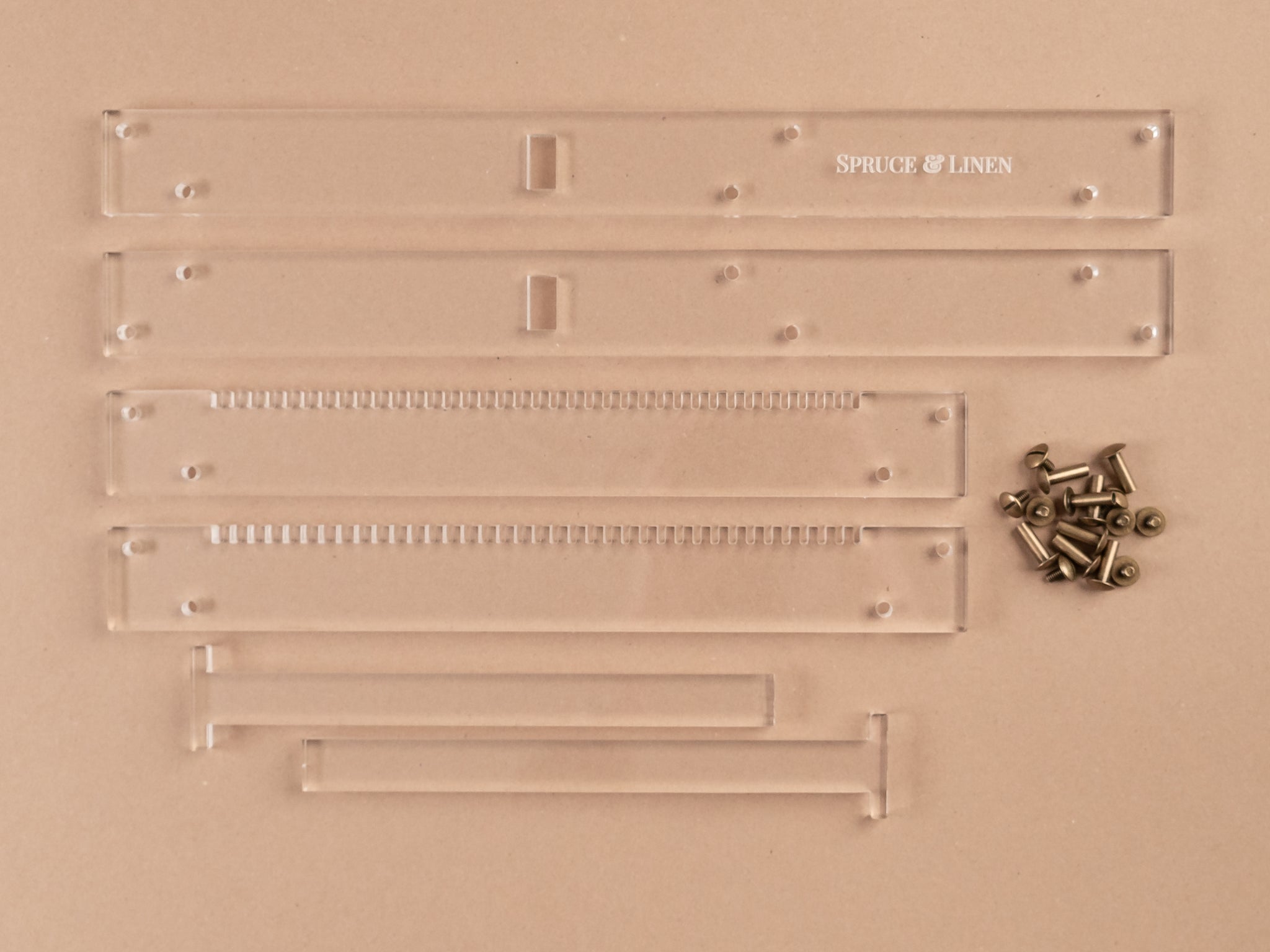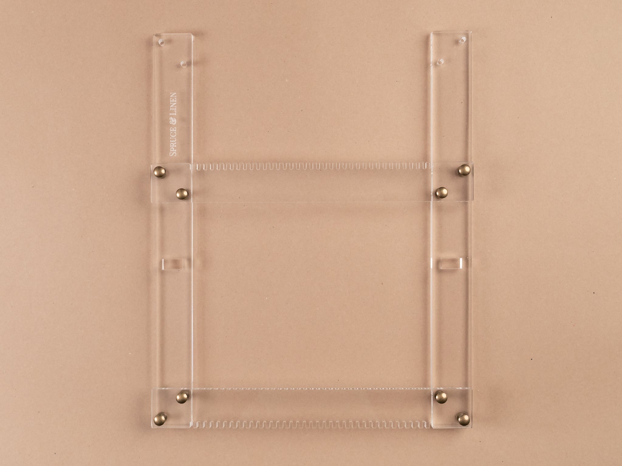 Our solid and sturdy flat pack frame looms are Made in Canada from 100% Recycled Acrylic and are the perfect loom for the traveling and homebody weaver alike, and come with legs! This loom is the perfect size for making small woven wall hangings, or adjust the top notch bar down to make mug rugs or bookmarks. Be sure to check out our Spruce & Linen YouTube channel for tutorials using this loom!